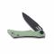 Le manche est équipé de plaquettes en G-10 Jade, un matériau composite en fibre de verre réputé pour sa légèreté, sa résistance et son aspect translucide distinctif. Le mécanisme Liner Lock assure un verrouillage sécurisé de la lame.