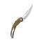 Le Pikal est un type de couteau dont le nom fait référence à la position de prise inversée (reverse grip) couramment utilisée en arts martiaux. Le Kubey Wave Crest Pikal, conçu par Yuze Zhong, est un couteau tactique compact et polyvalent, idéal pour le transport quotidien. La lame de type Pikal est fabriquée en acier Sandvik 14C28N, reconnu pour son excellent équilibre entre dureté, résistance à la corrosion et facilité d'affûtage. Son traitement thermique sous vide et cryogénique garantit une dureté, une résistance à l'usure et une durabilité accrues. La dureté de l'acier est de 60-62 HRC. La lame présente un fini Blackwash et est associée à un manche en Micarta marron qui offre une prise en main solide et confortable. Le mécanisme Liner Lock et le pivot sur roulements à billes en céramique assurent une ouverture et une fermeture fluides et rapides.