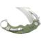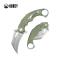 Couteau Tactical EDC Kubey Wrath Karambit Green G10 Handle 14C28N Blade IKBS Linerlock Clip plaint - Longueur ouvert 20cm - Longueur fermé 13.20cm - Longueur de lame 6.8cm - Epaisseur de lame 3.5mm - Lame de type claw plain edge finition Beadblast - Lame en acier 14C28N traitement Cryogenic - Dureté 60-62HRC - Lame montée sur pivot avec roulement à billes en céramique (Washers Material: Caged Ceramic Ball Bearing) - Platines en acier - Plaquettes du manche en Green G10 - Anneau en bout de manche - Ouverture d'une main avec le thumb & le flipper - Système de sécurité linerlock - Clip de poche - Poids 155grs - Designer: MUZI Design