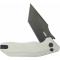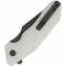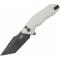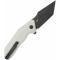 Le Manche Ivory G10 (blanc ivoire) offre un contraste saisissant avec la lame et la visserie noire. Les plaquettes en G10 sont texturées pour garantir une prise en main ergonomique et sécurisée en toutes circonstances. L'ouverture est d'une fluidité remarquable grâce au système de pivot sur roulements à billes céramique et aux ergots de pouce (Thumb Stud). Ce modèle intègre un mécanisme de verrouillage Button Lock, permettant une manipulation sûre et intuitive. D'une longueur totale de 20,50 cm, le Yokai est un compagnon EDC musclé et ultra-fiable.