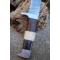 Couteau à lame fixe - Longueur totale 28.5cm - Longueur de lame 15cm - Lame de type kukkri plain edge - Garde & pommeau en nickel - Lame en acier damas 256 couches - Manche en bois & Os - Etui Cuir - Fab Artisanale