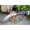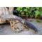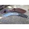 Kukri Gurkha - Longueur totale 31cm - Longueur de lame 18cm - Epaisseur de lame 6mm - Lame en acier carbone 1075 - Construction plate semelle - Plaquettes du manche en micarta - Mosaic pins - Trou dans le manche pour dragonne - Etui en cuir
