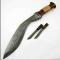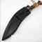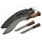 Couteau Kukri Damas Acier 256 Couches à lame fixe - Longueur totale 46.99cm - Longueur de lame 30.48cm - Lame en acier damas 256 couches - Manche en 2 bois - Livré avec 2 petits couteaux damas de longueur totale 11.43cm - Longueur de lame 7.62cm - Manche bois - Etui cuir
