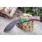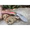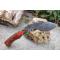 Couteau de Survie Kukri Gurkha à lame fixe - Longueur totale 21cm - Longueur de lame 11cm - Lame en acier carbone 1055 - Lame type kukkri plain edge finition stonewash - Construction d'une seule pièce - Full tang - Plaquettes du manche en bois - Mitres en bois - Etui simili cuir - Fabrication artisanale
