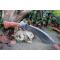 Kukri Gurkha Tigre fixe - Longueur totale 33.5cm - Longueur de lame 20.50cm - Lame en acier 3Cr13 - Construction plate semelle - Garde avec décor tigre - Plaquettes du manche en bois - Etui en nylon