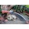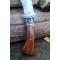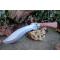 Kukri Gurkha Tigre fixe - Longueur totale 33.5cm - Longueur de lame 20.50cm - Lame en acier 3Cr13 - Construction plate semelle - Garde avec décor tigre - Plaquettes du manche en bois - Etui en nylon