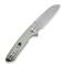 Lame pied de mouton en acier 9Cr18MoV finition "stonewashed" avec "flipper", mécanisme "Ball bearing" et cran intérieur, d'une longueur de 8 cm.