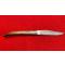 Pour les amateurs de belles pièces original, ce couteau Laguiole Prestige à un plein manche en pointe de corne blonde fumée et dans un souci du moindre détail, des vis de fixation pour la lame qui permet le reserrage si besoin.