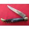 Ancien couteau hors concours fabriqué par Calmels à Laguiole . Manche en corne avec croix du berger et tire bouchon . Ressort, abeille, lame magnifiquement guillochées . Ressort très bon .. TBE .