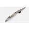 Coutellerie d'art, Laguiole pliant de fabrication française, lame en acier 14C28N, manche en molaire de mammouth, mitres en ébène, double guillochage du ressort ciselé main, couteau signé dans le ressort intérieur, pièce unique d'exception réalisée par David Dauvillaire, artisan coutelier de Prades d'Aubrac, env 22cm ouvert, état neuf