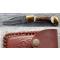 Couteau Lame DAMAS 128 couches Manche Bois de Cerf DM1019 + Housse en Cuir DM1019