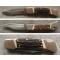 Couteau Bois de Cerf et Lame Damas DM1020 + Housse en Cuir - Longueur Fermé : 12.70 cm environ - Longueur de Lame : 10.16 cm environ - Platines en laiton - Manche en Bois de Cerf - Lame en DAMAS 128 couches - Système de sécurité - Mitres en nickel - Livré avec sa housse de rangement en cuir.