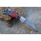 Longueur fermé 9.5cm - Longueur ouvert 16.5cm - Platines & mitres du manche en bickel - Plaquettes du manche en 3 bois - Trou pour dragonne - Ressort du dos guilloché - Lame en damas 128 couches - Les dessins de la lame sont comme une empreinte, ils sont uniques - Fabrication artisanale - Sécurité lockback - Ouverture a 2 mains