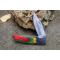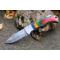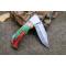 Longueur fermé 9.5cm - Longueur ouvert 16.5cm - Platines & mitres du manche en bickel - Plaquettes du manche en bois couleur Arlequin - Trou pour dragonne - Ressort du dos guilloché - Lame en damas 128 couches - Les dessins de la lame sont comme une empreinte, ils sont uniques - Fabrication artisanale - Sécurité lockback - Ouverture a 2 mains
