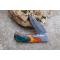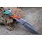 Longueur fermé 9.5cm - Longueur ouvert 16.5cm - Platines & mitres du manche en bickel - Plaquettes du manche en bois couleur arlequin - Trou pour dragonne - Ressort du dos guilloché - Lame en damas 128 couches - Les dessins de la lame sont comme une empreinte, ils sont uniques - Fabrication artisanale - Sécurité lockback - Ouverture a 2 mains