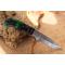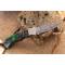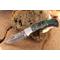 Longueur fermé 9.5cm - Longueur ouvert 16.5cm - Platines & mitres du manche en bickel - Plaquettes du manche en bois couleur émeraude - Trou pour dragonne - Ressort du dos guilloché - Lame en damas 128 couches - Les dessins de la lame sont comme une empreinte, ils sont uniques - Fabrication artisanale - Sécurité lockback - Ouverture a 2 mains
