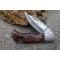 Longueur fermé 9.5cm - Longueur ouvert 16.5cm - Platines & mitres du manche en nickel - Plaquettes du manche en 2 bois - Trou dans le manche pour dragonne - Ressort du dos guilloché - Lame en damas 128 couches - Dos de la lame guilloché - Les dessins de la lame sont comme une empreinte, ils sont uniques - Fabrication artisanale - Sécurité lockback - Ouverture à 2 mains