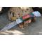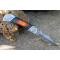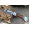 Longueur fermé 10cm - Longueur ouvert 18cm - Platines du manche en nickel - Mitres arabesque - Plaquettes du manche en bois couleur arlequin - Ressort du dos guilloché - Lame en damas 128 couches - Dos de la lame guilloché sur 3 cm - Les dessins de la lame sont comme une empreinte, ils sont uniques - Sécurité lockback