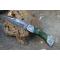 Longueur fermé 10cm - Longueur ouvert 18cm - Platines du manche en nickel - Mitres arabesque - Plaquettes du manche en bois green - Ressort du dos guilloché - Lame en damas 128 couches - Dos de la lame guilloché sur 3 cm - Les dessins de la lame sont comme une empreinte, ils sont uniques - Sécurité lockback