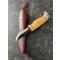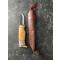 Ce Lappipuukko de Wood-Jewel est un couteau traditionnel lapon, parfait pour la chasse et pour les activités extérieures. La lame, de finition artisanale, forgée dans un acier à haute teneur en carbone est tranchante comme un rasoir. Le manche galbé offre une très bonne tenue en main, et un maniement aisé dans de nombreuses conditions. Livré dans un étui traditionnel en cuir. Le bouleau frisé et le bois de renne étant des produits naturels, chaque modèle peut légèrement varier en apparence, en couleur et par le dessin de ses nervures Matériau de la lame : acier à haute teneur en carbone Matériel du manche : bouleau frisé et bois de renne Longueur totale : 20 cm Longueur de lame : 8 cm Poids du couteau : 111 g .