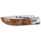 Ce modèle se distingue par ses variantes élégantes, offrant une touche de personnalisation à votre expérience. Chaque manche, qu'il soit en olivier, corne, corne de bélier, genévrier ou bois de cerf, assure à la fois une esthétique unique et une prise en main confortable dans toutes les conditions. Ces matériaux de choix permettent d'adapter le couteau à vos préférences personnelles tout en conservant une performance optimale.