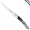 Couteau "Le Thiers®" (voir ci-dessous), une série unique de couteaux de table stylés et éléguants.(vendus à l'unité ou en coffret.) Le poids et l'équilibre des formes de ce couteau de table haut de gamme lui confèrent une prise en main exceptionnelle et très agréable qui surprendra vos convives les plus exigents. La lame de ce couteau de table vous offrira un confort de coupe inégalé. Avec ce couteau, l'expression "Art de la Table" prend tout son sens. Caractéristiques techniques » Lame en inox » Mitre inox » Manche en corne pressée Le couteau "Le Thiers®" est un modèle déposé auprès de l'I.N.P.I. (Institut National de la Propriété Industrielle) par la Confrérie du même nom en juillet 1994. Il est la propriété exclusive de la Confrérie qui en concède l'utilisation à ses adhérents. Ceux-ci s'engagent à respecter un cahier des charges ( Le règlement de Jurande) Cet engagement garantit aux consommateurs qu'ils acquièrent un produit de qualité, fabriqué entièrement sur le bassin coutelier Thiernois.
