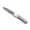 Couteau Lionsteel OPERA lame acier damas inox à cran +coffret +manche abalone