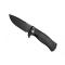 Couteau LIONSTEEL « SR11 », lame noire acier Sleipner avec « flipper » et cran intérieur, manche monobloc SOLID® 12 cm aluminium noir avec clip réversible et pic brise-vitre en bout.