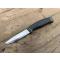 Ce couteau à lame fixe dispose d'un manche en gomme noir avec le logo de la marque Mora, les deux extrémités sont de couleur kaki. Celui-ci offre une prise en main idéale de par son ergonomie indépendamment des conditions météo. La forme de la lame Clippoint est conçue à partir d'acier inoxydable 12C27. Celle-ci confère un tranchant lisse sur une longueur de 10,5 cm. Il est possible d'effectuer une gravure sur la lame pour rendre le produit unique. Ce modèle est livré avec un étui rigide vert kaki étudié pour son gabarit. Ce dernier apporte une bonne rétention de ce couteau bushcraft.