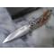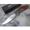 Manche en bois marron façon crosse avec des gravures décoratives sur le bois et les bolsters en acier inoxydable.