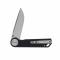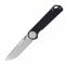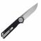 Le manche est conçu en Black Canvas Micarta (Micarta de toile noire), un matériau très prisé en coutellerie pour son excellente adhérence, même mouillé, et sa grande résistance aux éléments. L'ouverture est facilitée par une ouverture flipper, permettant un déploiement rapide et fluide d'une seule main. Avec une longueur fermée de 10,49 cm, il se glisse discrètement en poche grâce à son clip de transport et dispose d'un trou pour lanière.