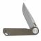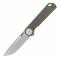 Le manche est conçu en Brown Canvas Micarta (Micarta de toile marron), un matériau très prisé en coutellerie pour son excellente adhérence, même mouillé, et sa capacité à développer une patine unique avec le temps. L'ouverture est facilitée par une ouverture flipper, permettant un déploiement rapide et fluide d'une seule main. Avec une longueur fermée de 10,49 cm, il se glisse discrètement en poche grâce à son clip de transport.