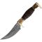 Couteau Marbles Small Skinner Damascus Blade Leather/Wood/Stag Handle Leather Sheath à lame fixe - Longueur totale 19.05cm - Longueur de lame 8.89cm - Lame de type skinner plain edge - Lame en acier Damas - Garde & pommeau en laiton - Manche en rouleaux de cuir, bois & bois de Chevreuil - Etui cuir
