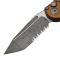 Lame Tanto partiellement serrated en acier Bohler M390MK avec une dureté de 60-62 HRC, offrant une performance de coupe supérieure et une excellente résistance à l'usure.