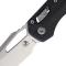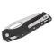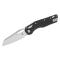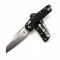 Le manche, d'une longueur de 12,83 cm, est fabriqué en polymère noir moulé par injection, offrant une durabilité extrême tout en étant économique. Sa largeur est de 2,92 cm et son épaisseur de 1,4 cm, assurant une prise en main solide. L'ouverture du couteau s'effectue via un Thumb Hole (trou pour le pouce), et le mécanisme de verrouillage Ram-Lok (Crossbar Lock) assure une sécurité fiable et une utilisation aisée.
