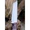 Couteau Mini Katana Tanto à lame fixe - Longueur totale 31.5cm - Longueur de lame 17cm - Lame en acier carbone 1055 - Lame type tanto plain edge - Construction d'une seule pièce - Full tang - Plaquettes du manche en bois - Mitres en bois - Trou dans le manche pour dragonne - Etui cuir - Fabrication artisanale