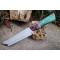 Couteau Mini Katana Tanto à lame fixe - Longueur totale 31.5cm - Longueur de lame 17cm - Lame en acier carbone 1055 - Lame type tanto plain edge - Construction d'une seule pièce - Full tang - Plaquettes du manche en bois - Mitres en bois - Trou dans le manche pour dragonne - Etui cuir - Fabrication artisanale