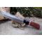Couteau Mini Katana Tanto à lame fixe - Longueur totale 32cm - Longueur de lame 17.5cm - Lame en acier carbone 1055 - Lame type tanto plain edge - Dents sur le haut de la lame pour allume feu - Construction d'une seule pièce - Full tang - Plaquettes du manche en résine - Mitres en résine - Trou dans le manche pour dragonne - Etui cuir - Fabrication artisanale