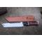 Couteau Mini Katana Tanto à lame fixe - Longueur totale 32cm - Longueur de lame 17.5cm - Lame en acier carbone 1055 - Lame type tanto plain edge - Dents sur le haut de la lame pour allume feu - Construction d'une seule pièce - Full tang - Plaquettes du manche en résine - Mitres en résine - Trou dans le manche pour dragonne - Etui cuir - Fabrication artisanale