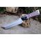 Couteau Mini Katana Tanto Lame Acier Carbone 1055 Manche Résine Etui Cuir Fabrication Artisanale