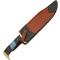 Le couteau est livré avec un étui en cuir marron pratique permettant le port à la ceinture. Son poids est de 618g.