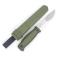 Livré dans un étui rigide qui passe à la ceinture, le manche de ce couteau et son étui sont de couleur kaki.