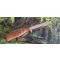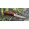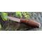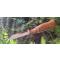 La lame est montée sur un manche en bois de chêne brun poncé et poli, ainsi que deux intercalaires de cuir noir.