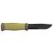 Le manche en caoutchouc vert garantit une prise en main confortable et sécurisée, même dans des conditions humides. La lame noire, dotée d'un revêtement DLC, non seulement améliore l'esthétique du couteau, mais renforce également sa durabilité. Ce modèle fixe est accompagné d'un étui en polymère, facilitant son transport et son rangement en toute sécurité.