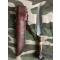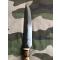 - Manche en os, cerisier, intercalaires cuir et tibia de cerf. Splendide et excellente prise en main. Montage pleine soie (non débouchante). C'est du costaud.
