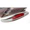 Ce couteau est doté d'une lame longue clip point en acier inoxydable, offrant une performance de coupe fiable et une durabilité. Le manche est orné de bois de rose (brown rich grain hardwood) avec des mitres en acier inoxydable, lui conférant une allure sophistiquée et une prise en main confortable. Le ressort arrière guilloché (fileworked backspring) ajoute une touche artisanale raffinée. Le mécanisme Slipjoint assure une ouverture et une fermeture douces de la lame, sans verrouillage.