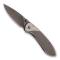 Lame en acier inox 440A (dureté 56 HRC) avec revêtement titane, à cran de verrouillage "framelock", avec ergot de pouce pour ouverture une main, d'une longueur de 7 cm.
