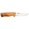 Le couteau nordique Helle Eggen se distingue par sa lame en acier 12C27 Sandvik, réputée pour sa robustesse et sa capacité à conserver un tranchant exceptionnel. Le profil de lame Drop Point assure une polyvalence optimale, adaptée à diverses tâches de coupe. Le manche en bouleau, avec sa finition naturelle, offre une prise en main confortable et sécurisée, renforcée par une demi-garde. Un étui en cuir noir accompagne ce couteau, garantissant un transport sûr et élégant.