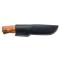 Le couteau nordique Helle Eggen combine une lame en acier 12C27 Sandvik, reconnue pour sa durabilité, avec un profil Drop Point polyvalent. Le manche en bouleau naturel assure une prise en main confortable. Un étui en cuir noir accompagne ce modèle, offrant sécurité et élégance lors du transport. Longueur totale : 211 mm.