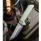 Le Manche Jade G10 (Natural G10) offre une esthétique translucide unique et une robustesse à toute épreuve. Les plaquettes sont finement texturées pour assurer un grip infaillible, même dans des conditions humides. D'une longueur totale de 20,40 cm, ce modèle se distingue par sa polyvalence d'ouverture : un Flipper rapide pour une action nerveuse et un Thumb Disk (disque de pouce) stylisé en culot de munition calibre .45 pour une ouverture manuelle fluide. Le tout est monté sur des roulements à billes en céramique et sécurisé par un Button Lock (verrouillage par bouton) intuitif. Avec une épaisseur de lame de 0,35 cm, c'est un outil d'EDC massif et fiable.